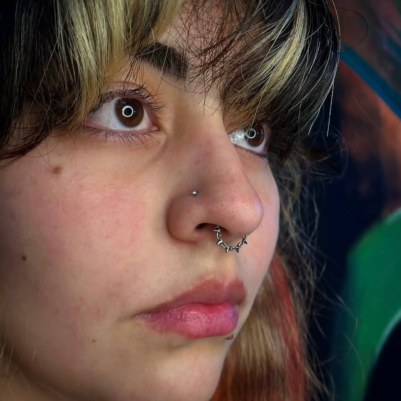 Tytanowy clicker G23 z ćwiekami – srebrny kolczyk do piercingu septum i daith