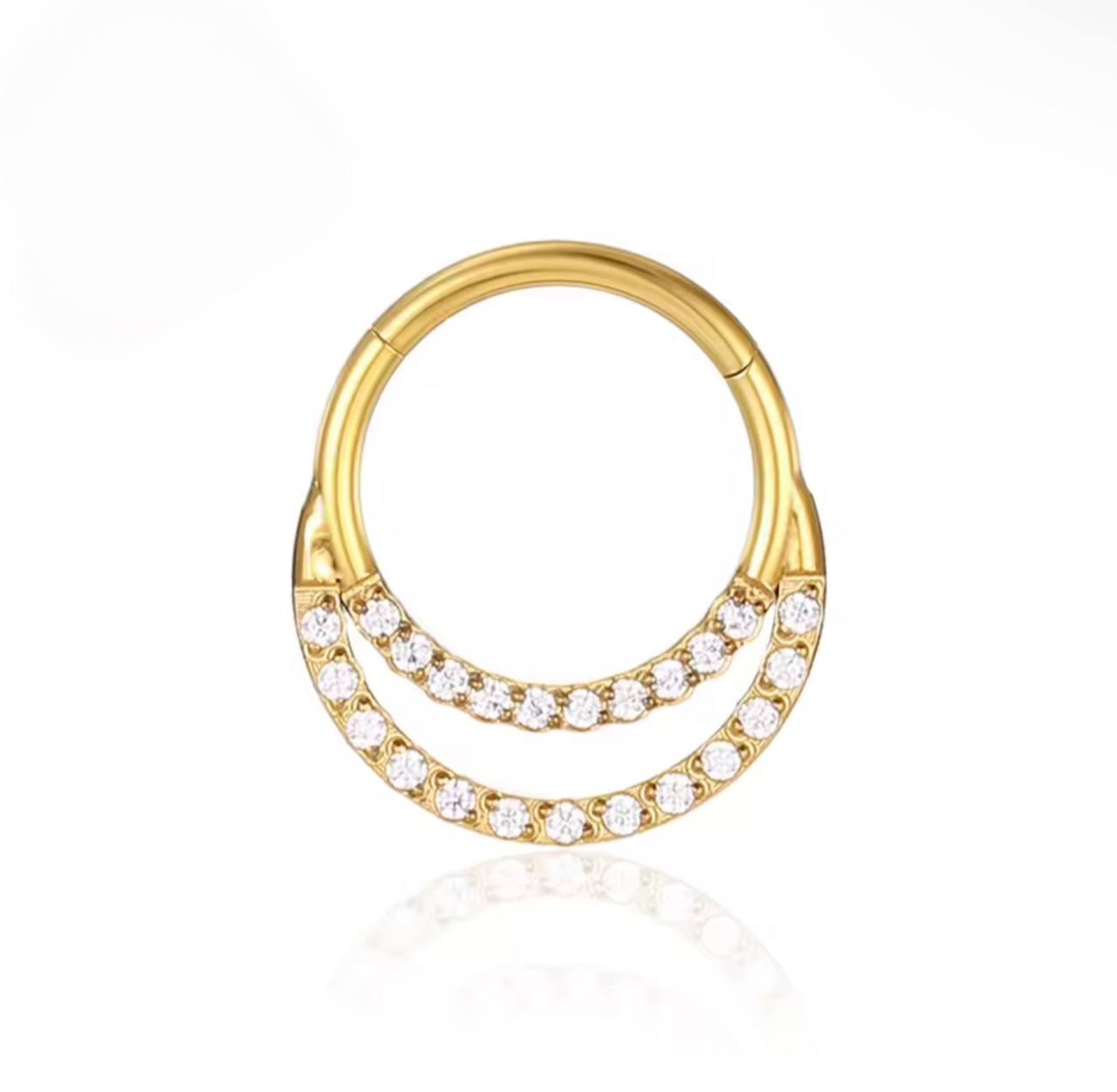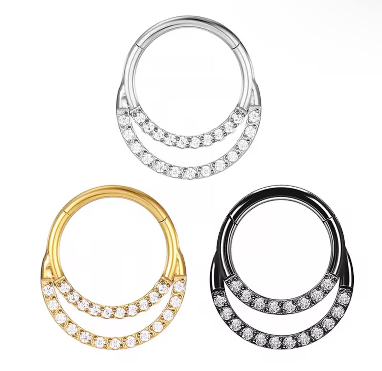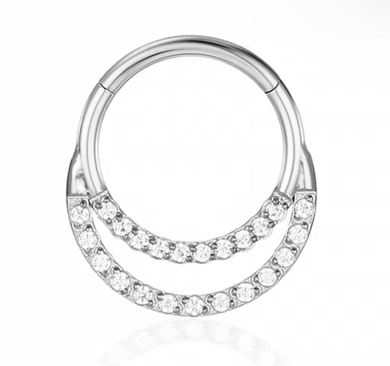 Tytanowy kolczyk CLICKER srebrny z cyrkoniami – Helix, Conch, Lobe