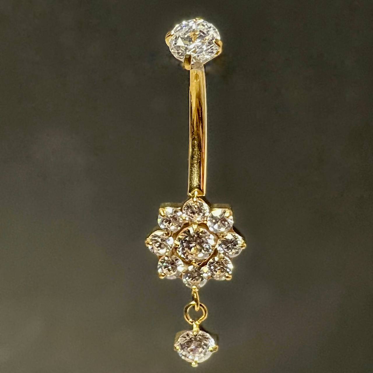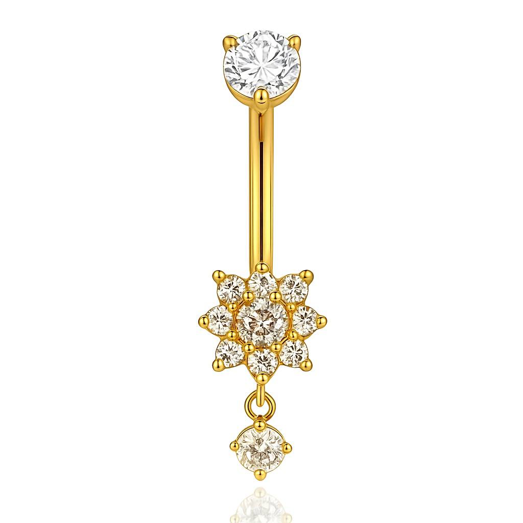 Tytanowy kolczyk do pępka złoty kwiat z białymi cyrkoniami