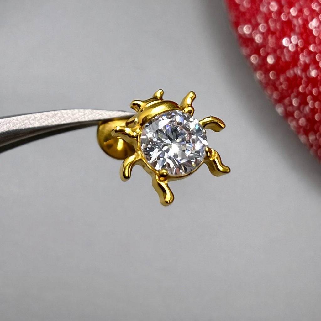 KOLCZYK DO PIERCINGU PAJĄK Z CYRKONIĄ – TYTAN ASTM F-136 ZŁOTY LABRET