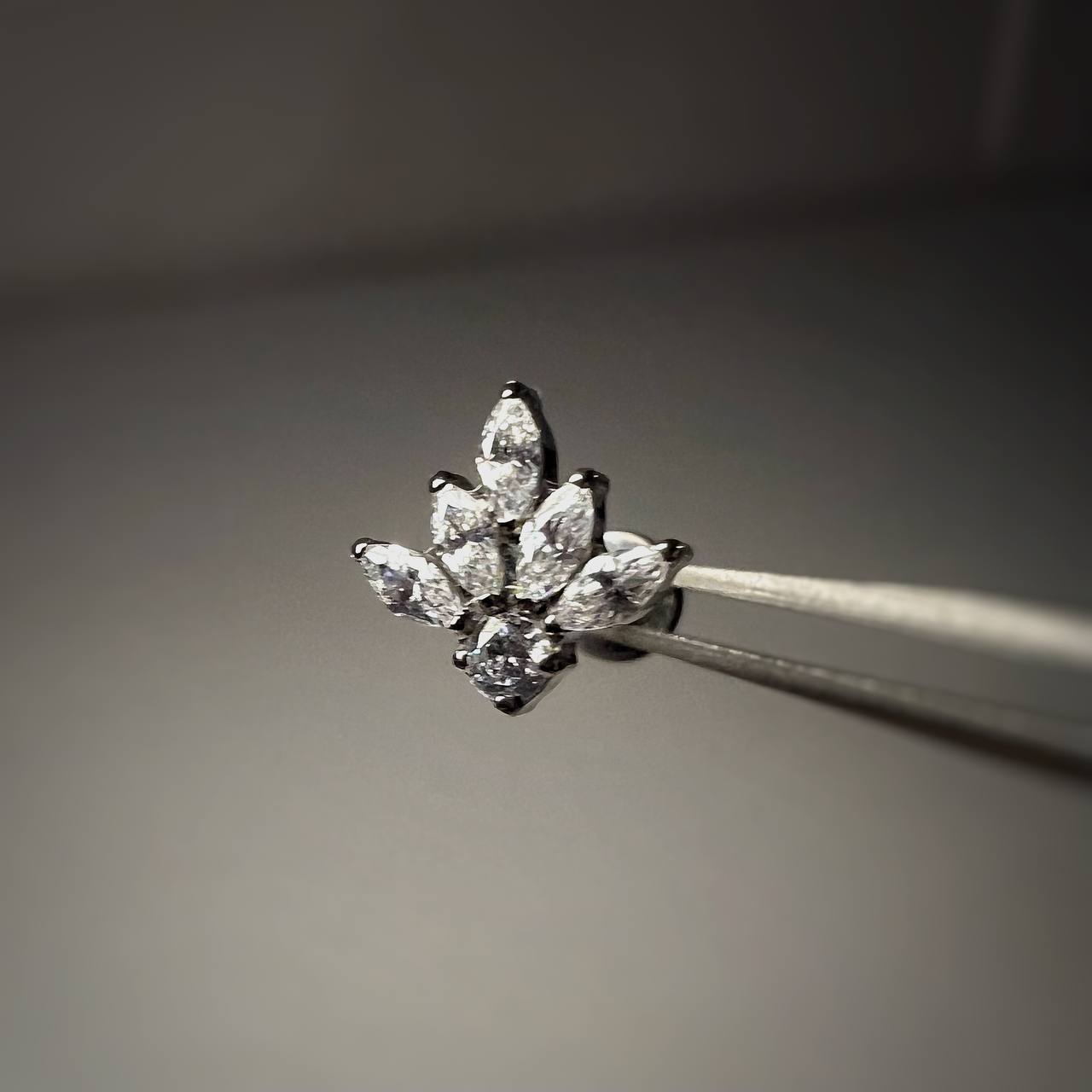 Kolczyk LABRET tytanowy srebrny z cyrkoniami w kształcie listków ASTM F-136
