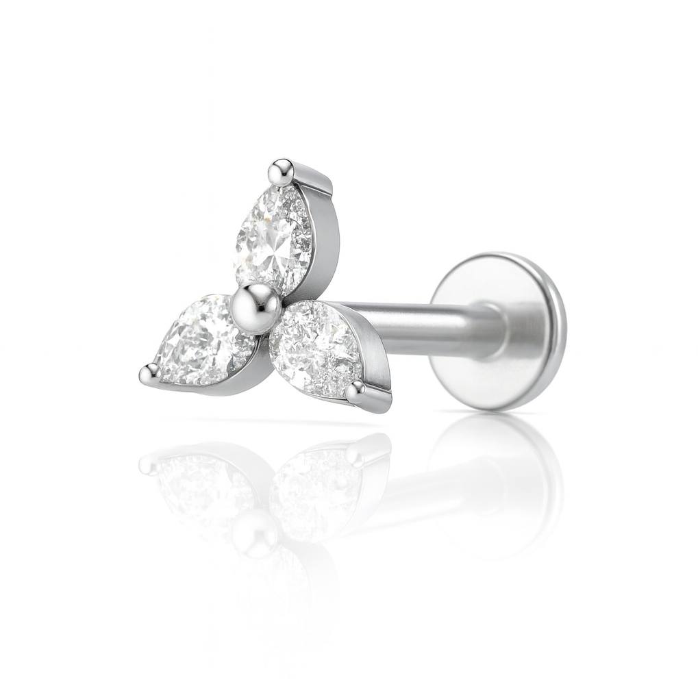 Kolczyk labret tytanowy srebrny z cyrkoniami
