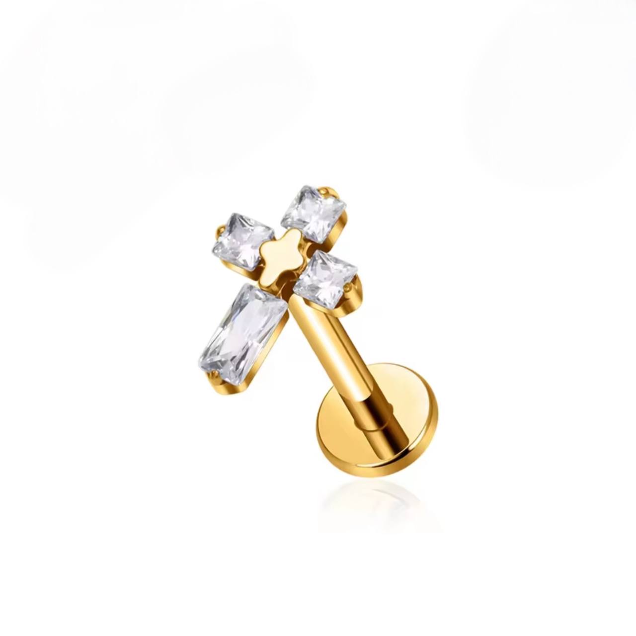 Kolczyk labret z cyrkoniami w kształcie krzyżyka – tytan ASTM F-136