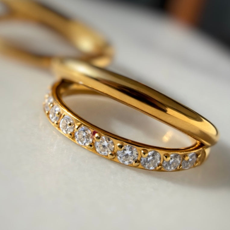 kółko clicker z białymi cyrkoniami Złote tytanowe