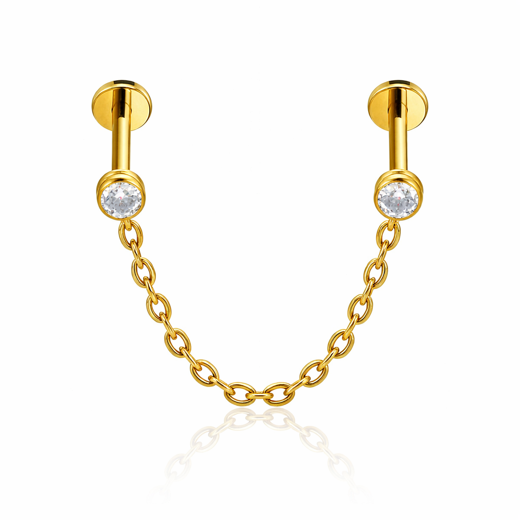 LABRET DO PIERCINGU UCHA Z CIRKONIAMI I ŁAŃCUSZKIEM ZŁOTY