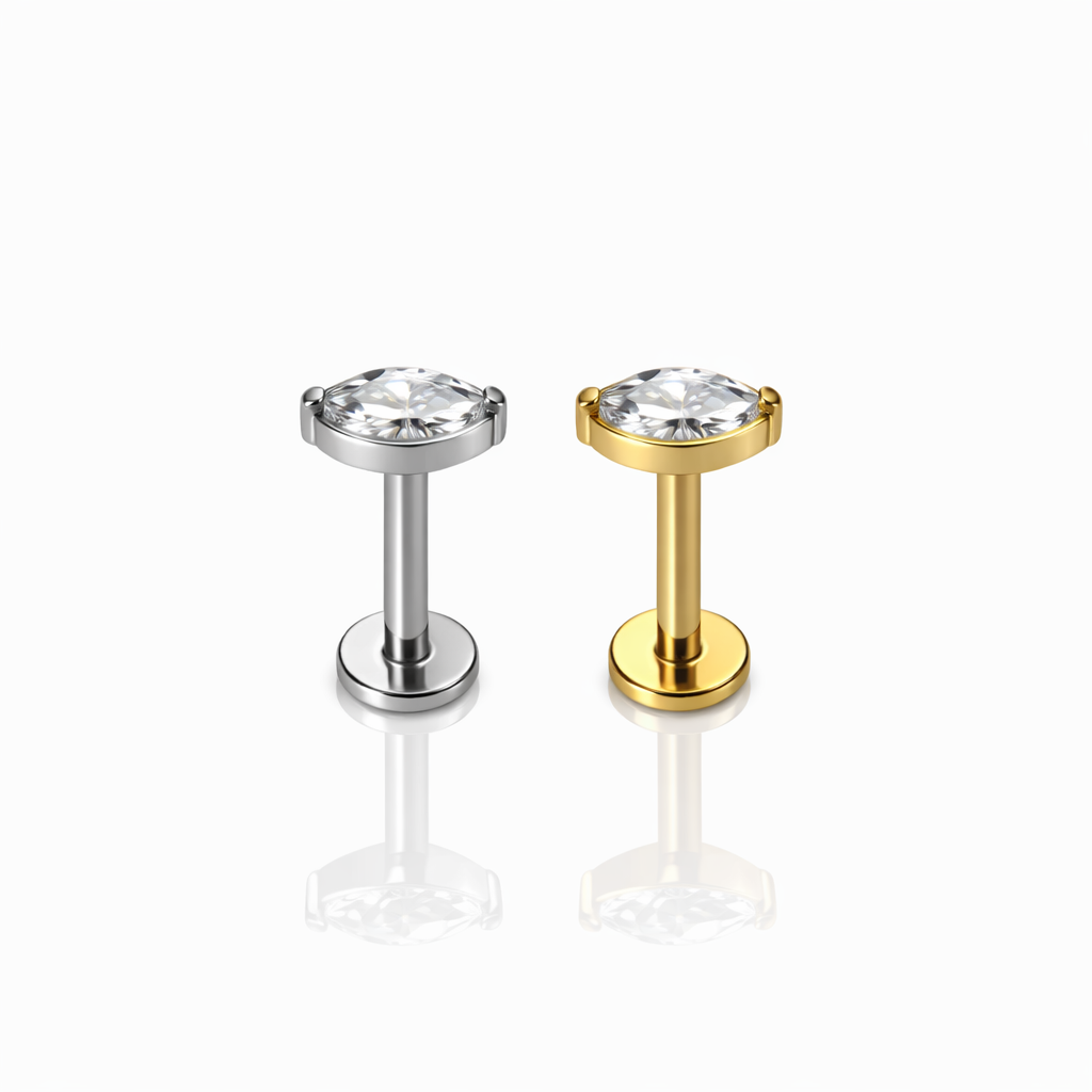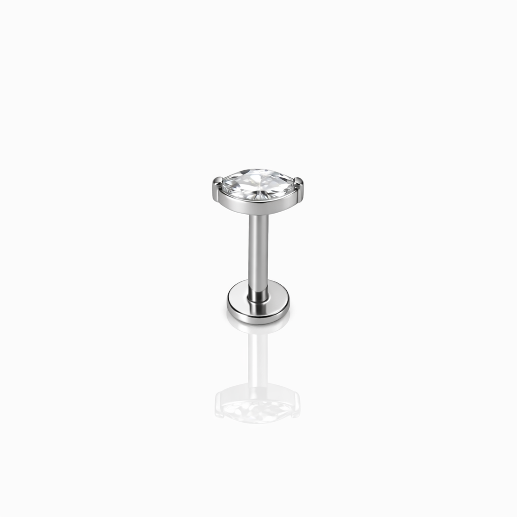 Uniwersalny labret z okrągłą cyrkonią, wykonany z tytanu ASTM F-136. Gwint wewnętrzny, płaska baza, wysoki komfort noszenia. Odpowiedni do ucha, nosa, wargi i innych piercingów.