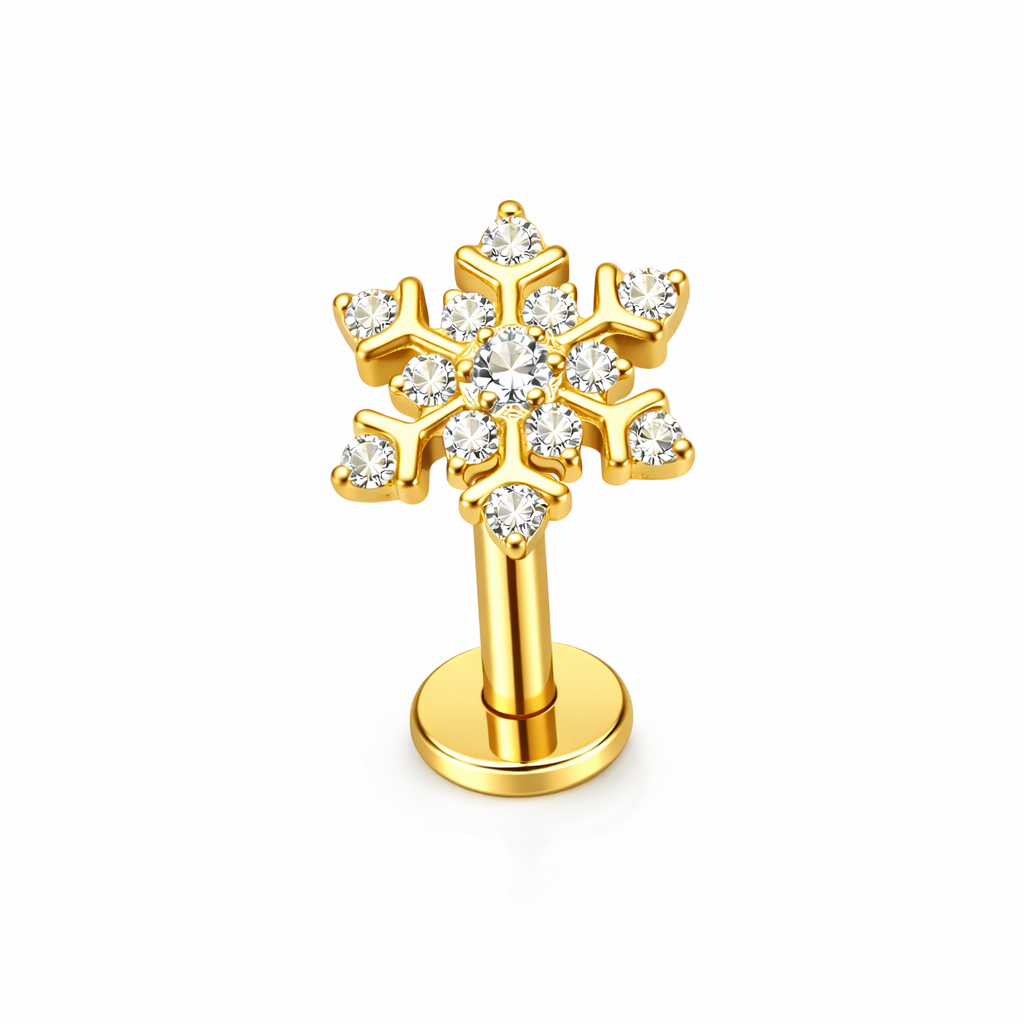 Kolczyk typu labret – kwiat z cyrkoniami.Labret do piercingu ucha z tytanu klasy medycznej ASTM F-136.Idealny do helixa, tragusa, concha i płatka ucha.Bezpieczny do świeżych przekłuć, profesjonalna jakość.