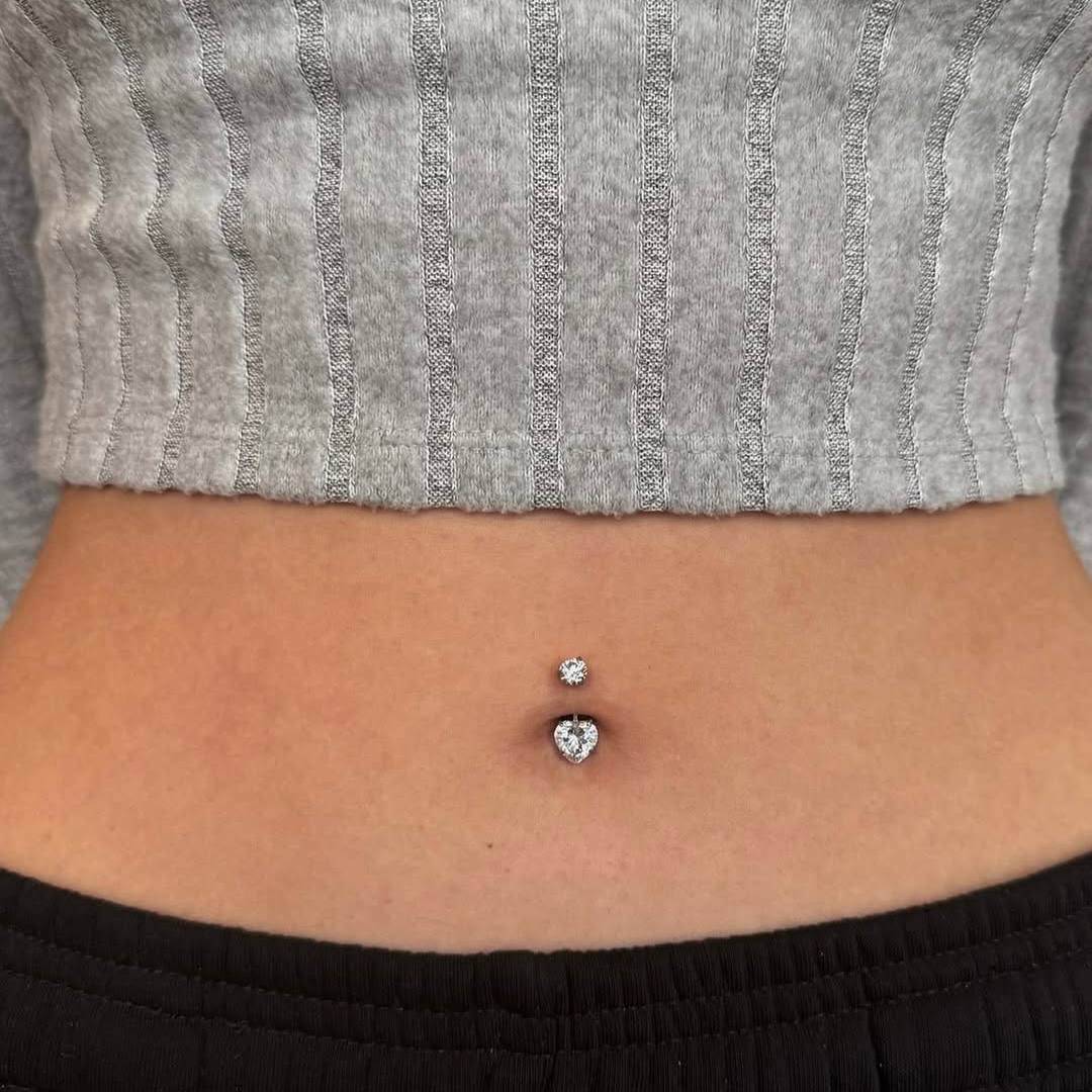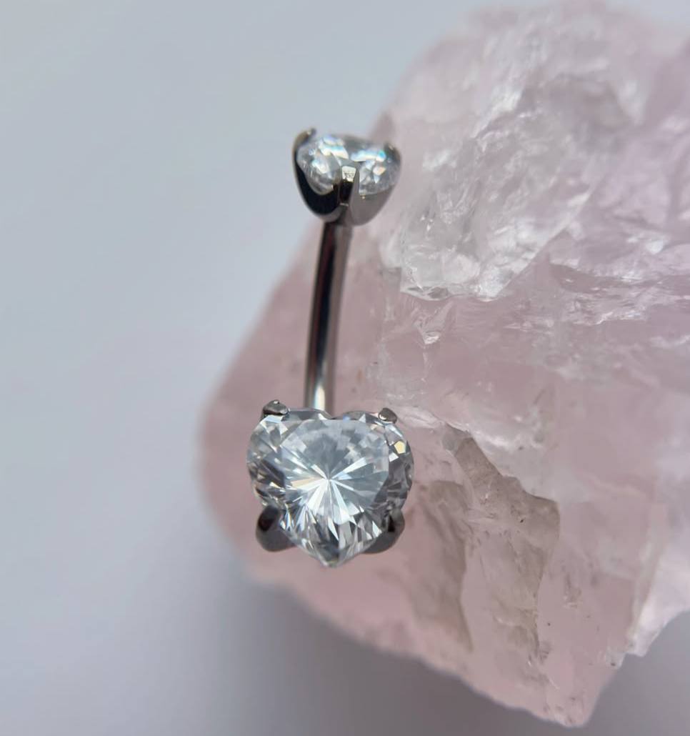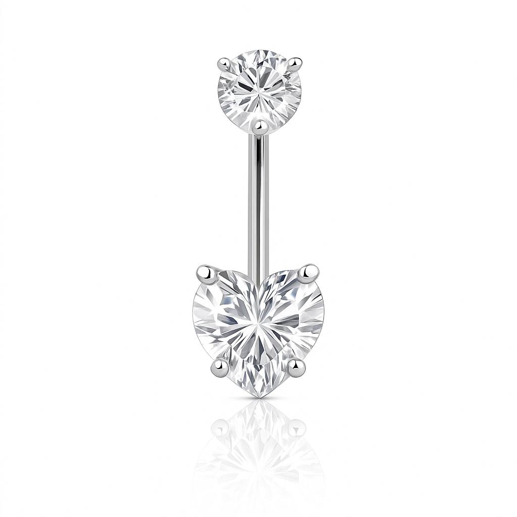 Tytanowy kolczyk do pępka z dwoma cyrkoniami SERCE Srebrny