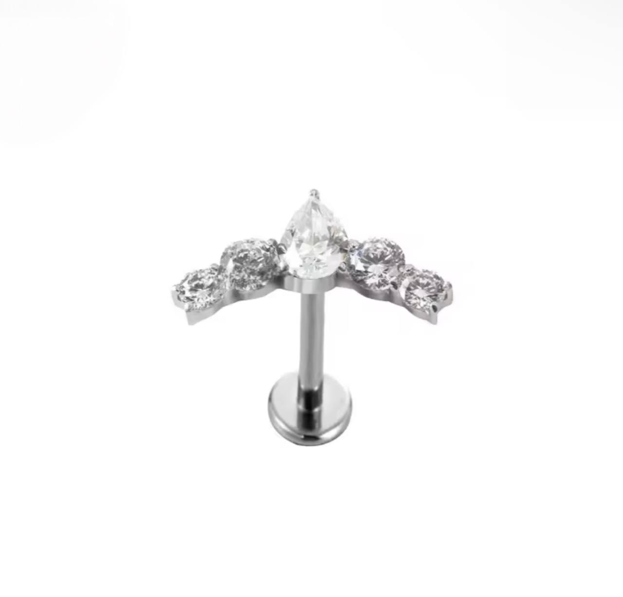 Srebrny kolczyk do piercingu z cyrkonią w kształcie łezki