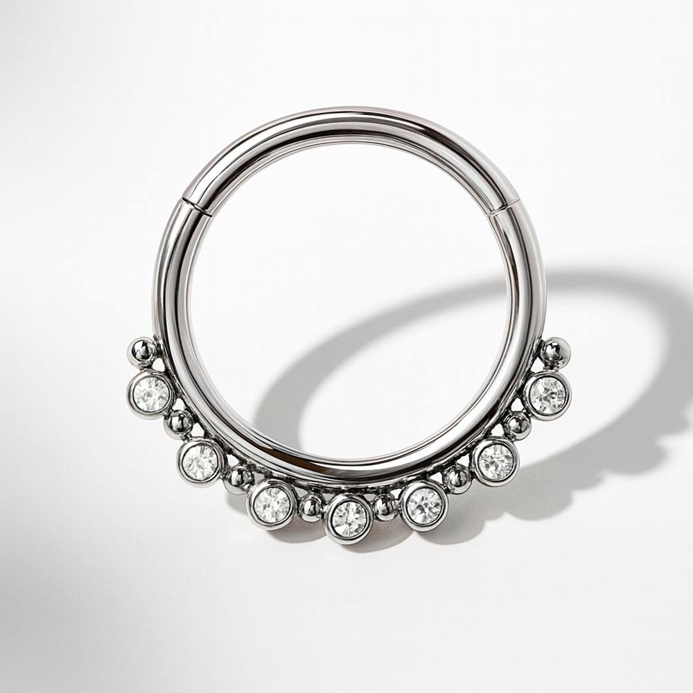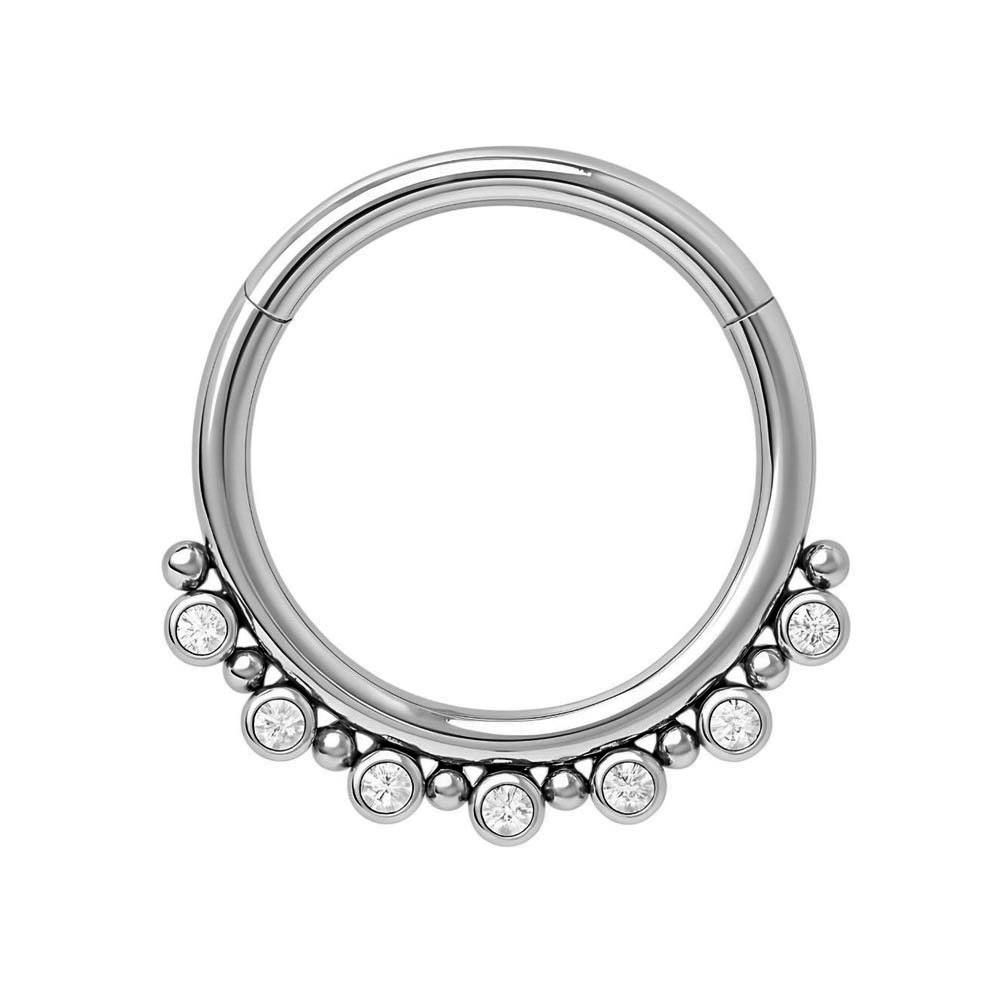 Tytanowy kolczyk CLICKER srebrny z cyrkoniami – Helix, Conch, Lobe