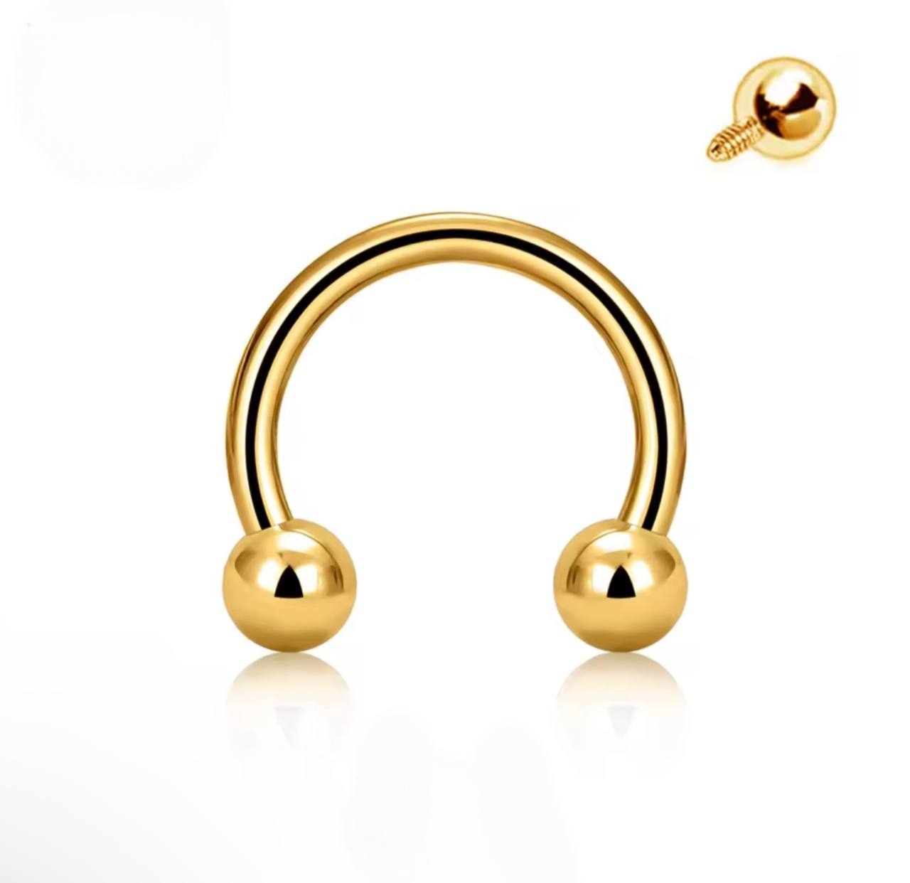 Tytanowa złota podkowa G23 z kulkami – kolczyk do piercingu