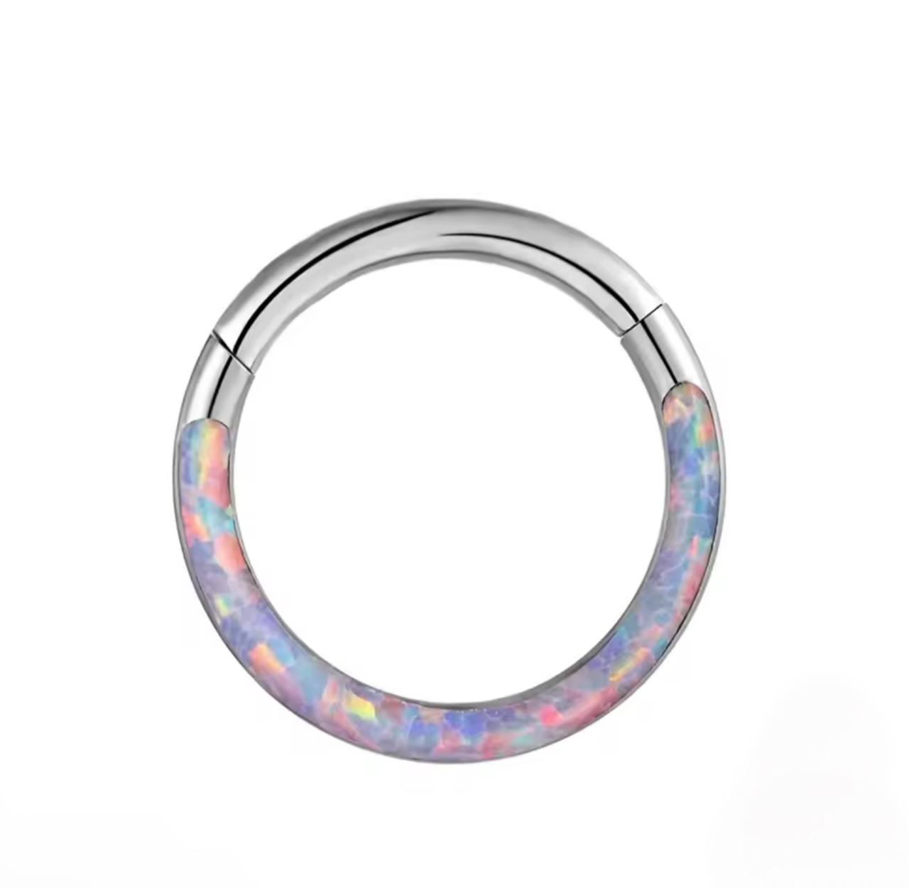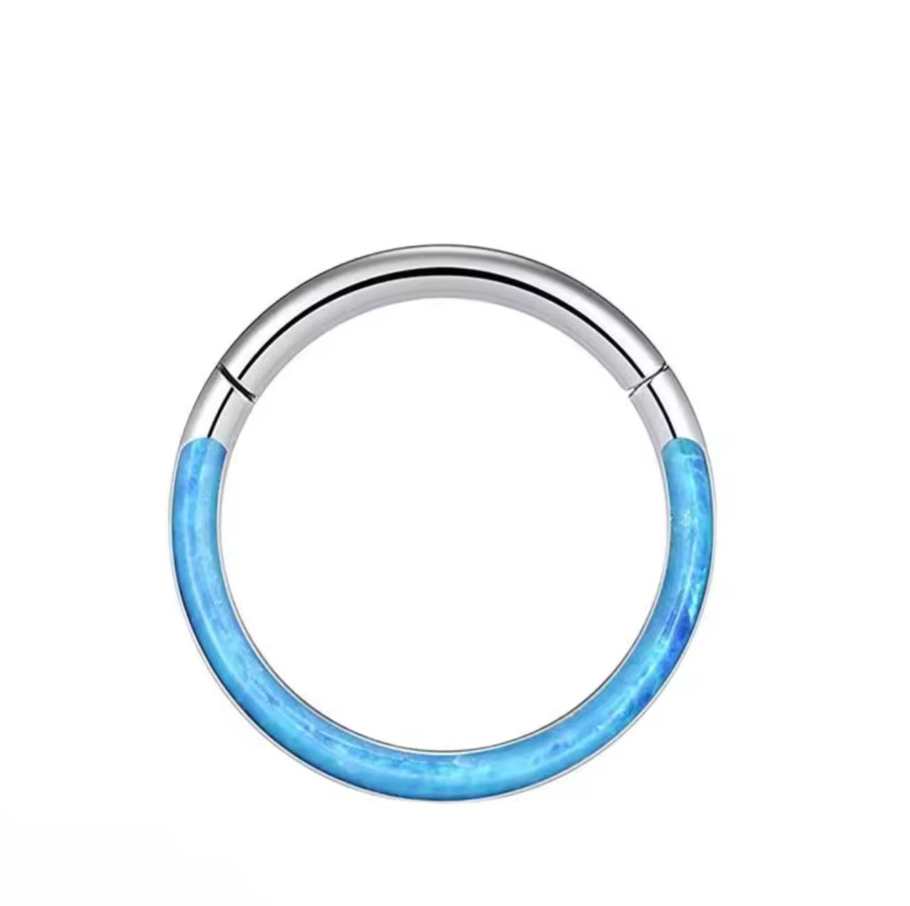 Tytanowe kółko clicker z opalem - kolczyk do piercingu ucha i nosa
