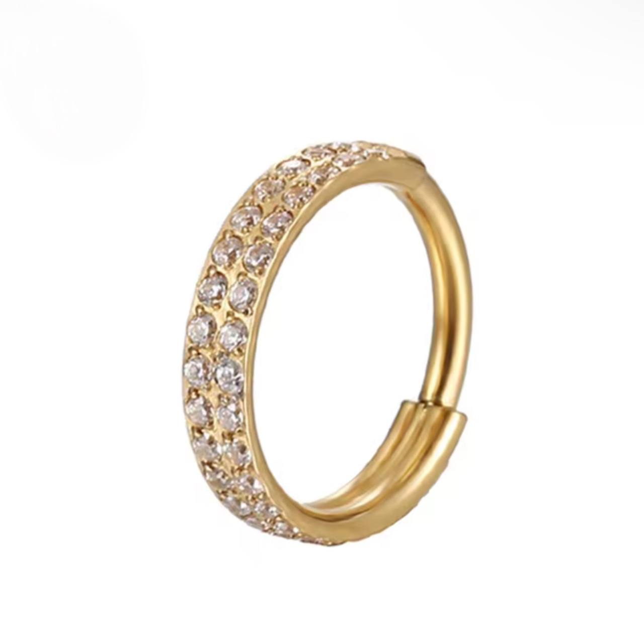 Złoty tytanowy clicker G23 z podwójnym rzędem cyrkonii – kolczyk do piercingu ucha
