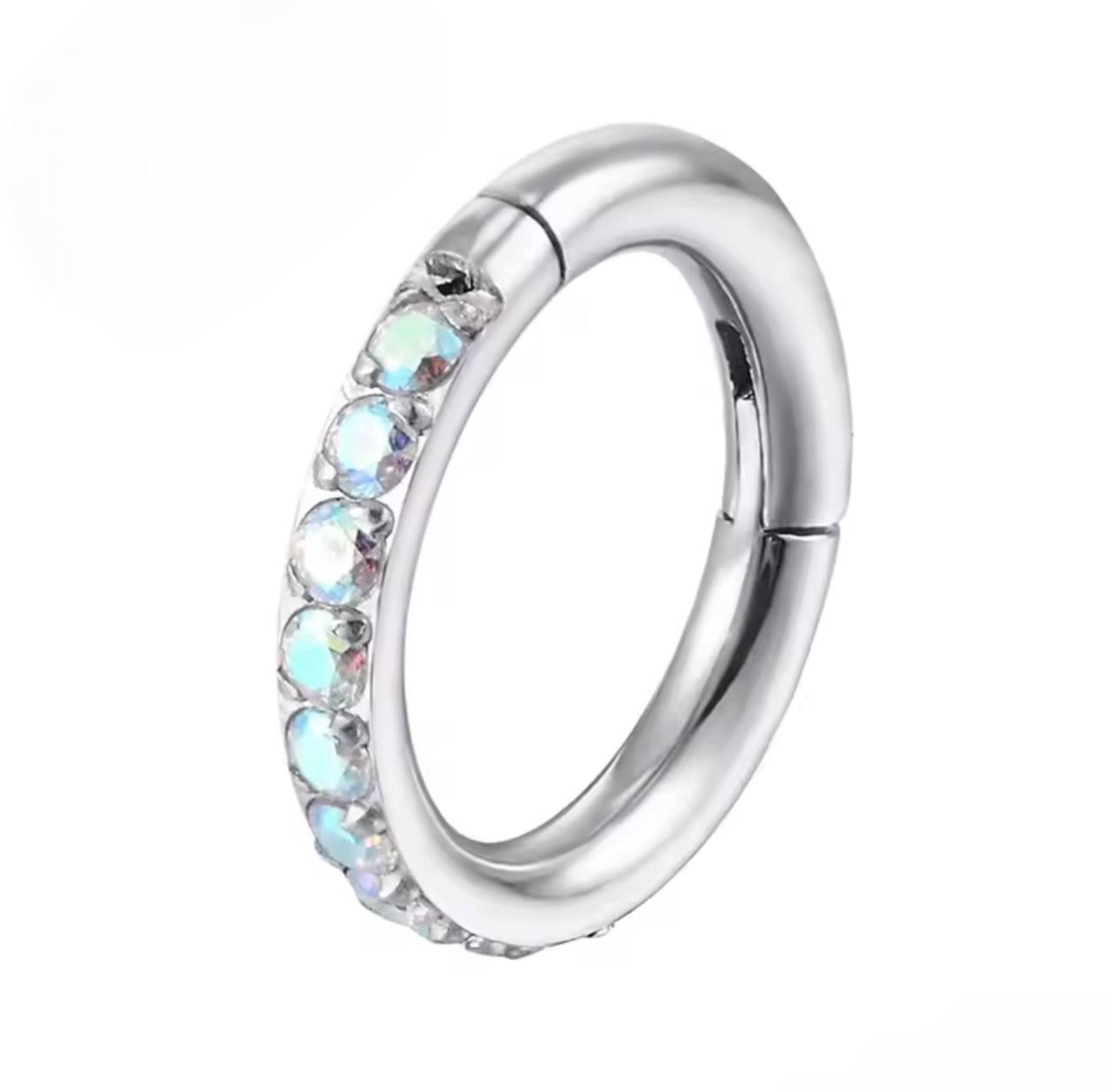 Tytanowy kolczyk CLICKER srebrny z cyrkoniami – Helix, Conch, Lobe