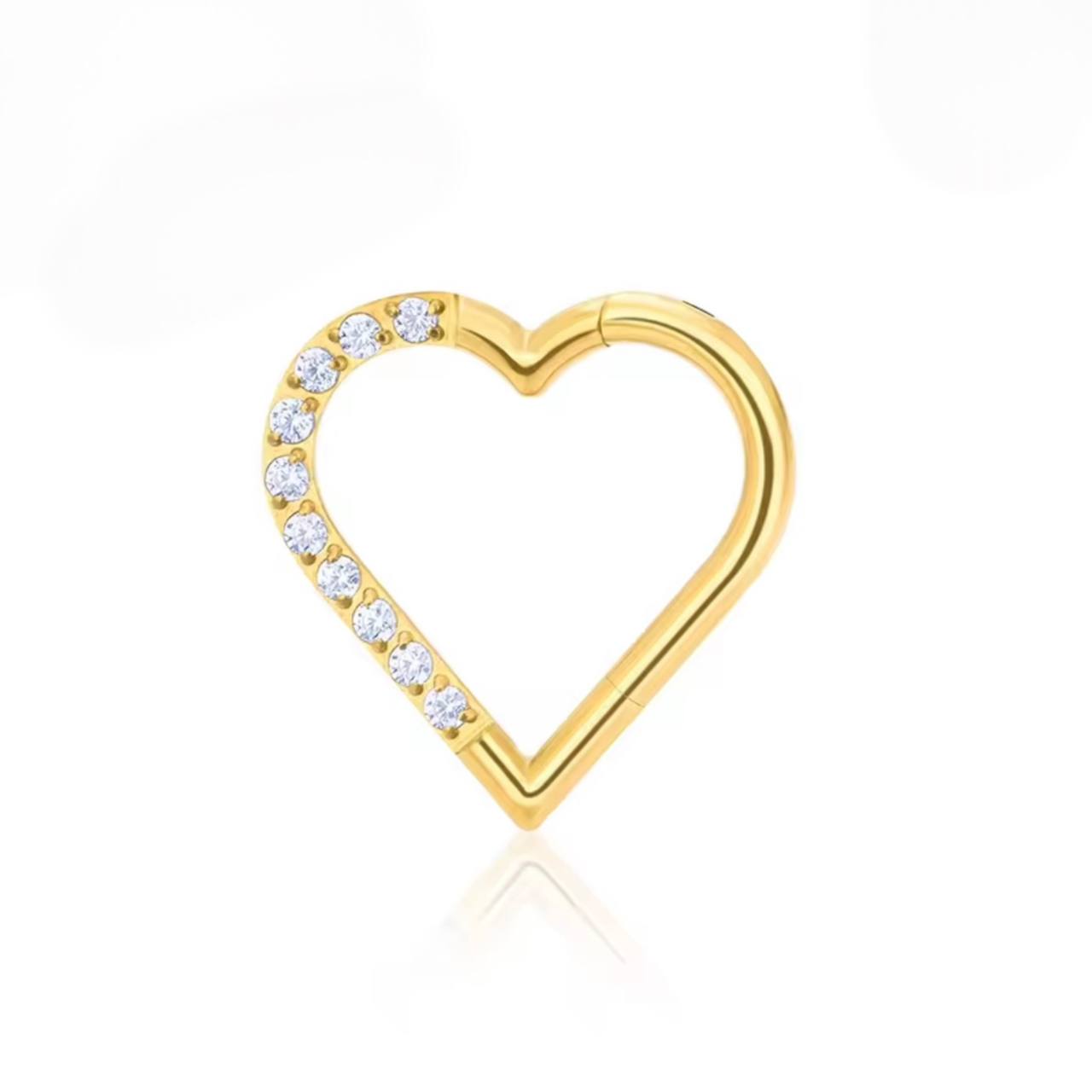Tytanowy CLICKER serce z cyrkoniami – kolczyk do piercingu prawego ucha, złoty