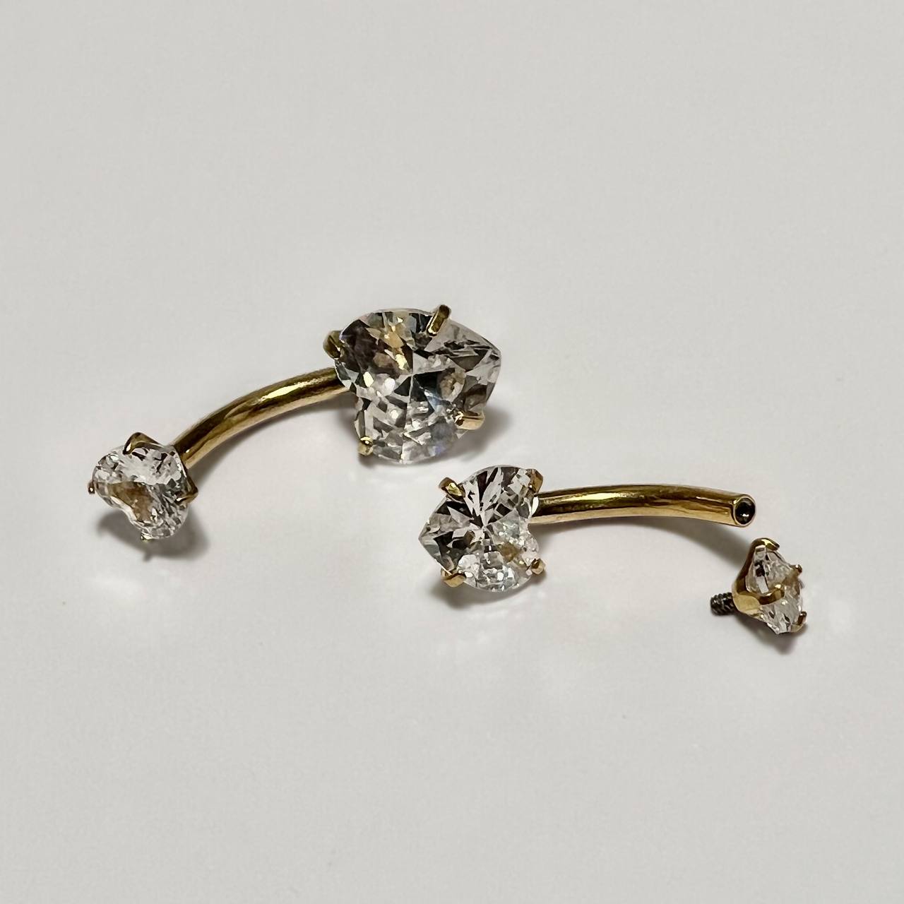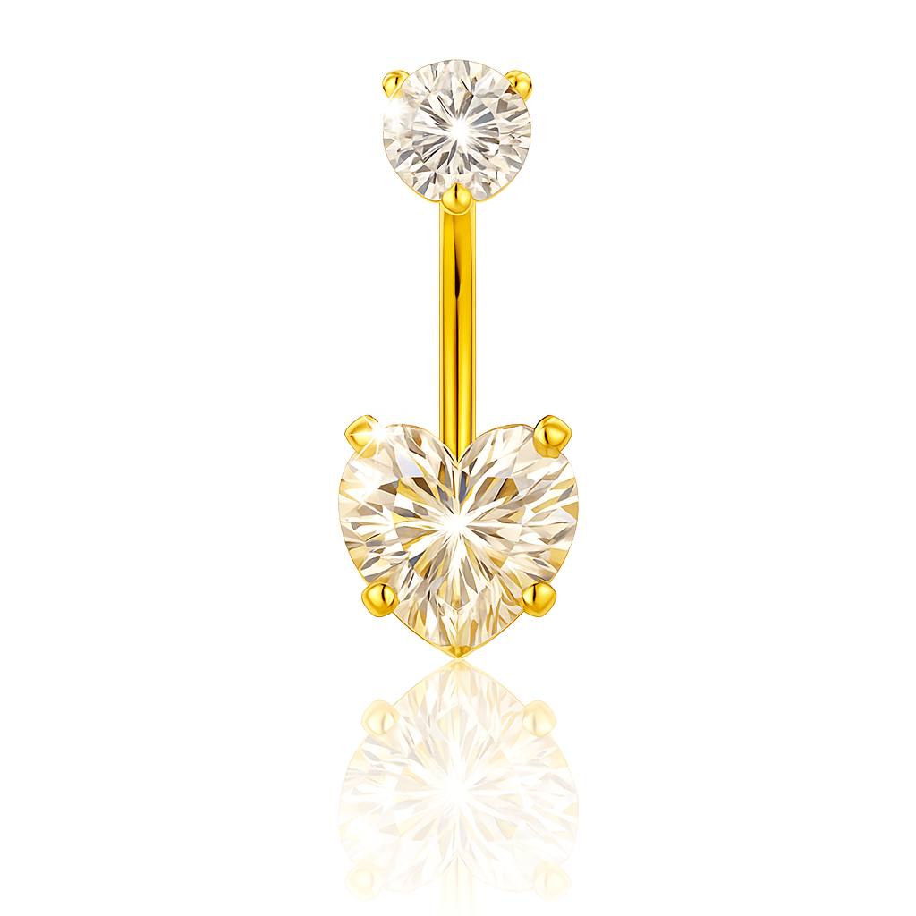 Tytanowy kolczyk do pępka z dwoma cyrkoniami SERCE Złoty