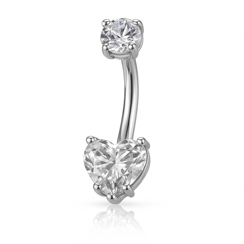 Tytanowy KOLCZYK do pępka z osadzoną cyrkonią w zamkniętej oprawie Srebrny