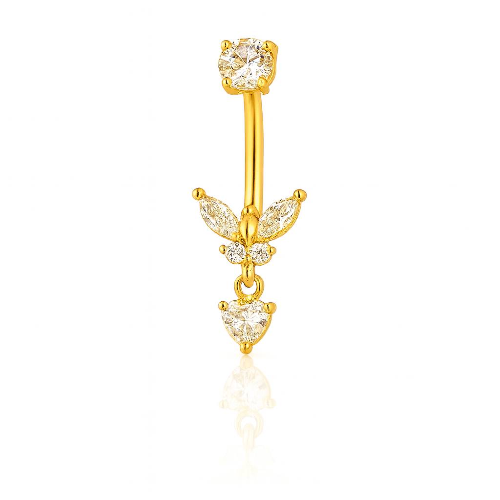 Tytanowy KOLCZYK do pępka z motylkiem, cyrkoniami Złoty
