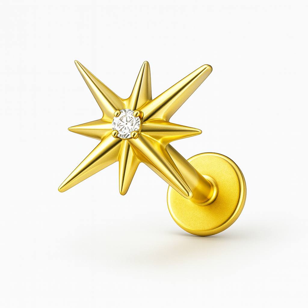 Tytanowy kolczyk gwiazda z cyrkonią – złoty G23 kolczyk do piercingu