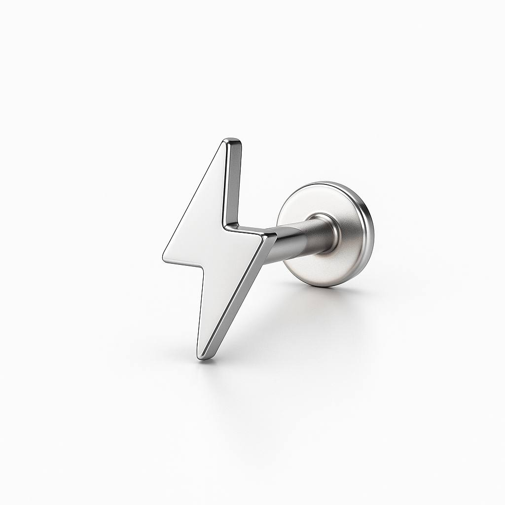 Tytanowy srebrny labret G23 z piorunem – kolczyk do piercingu