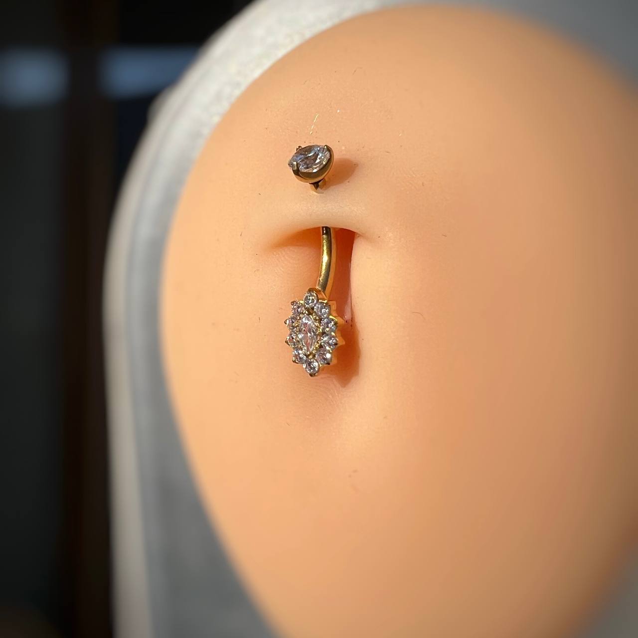 Tytanowy złoty kolczyk do pępka z cyrkoniami