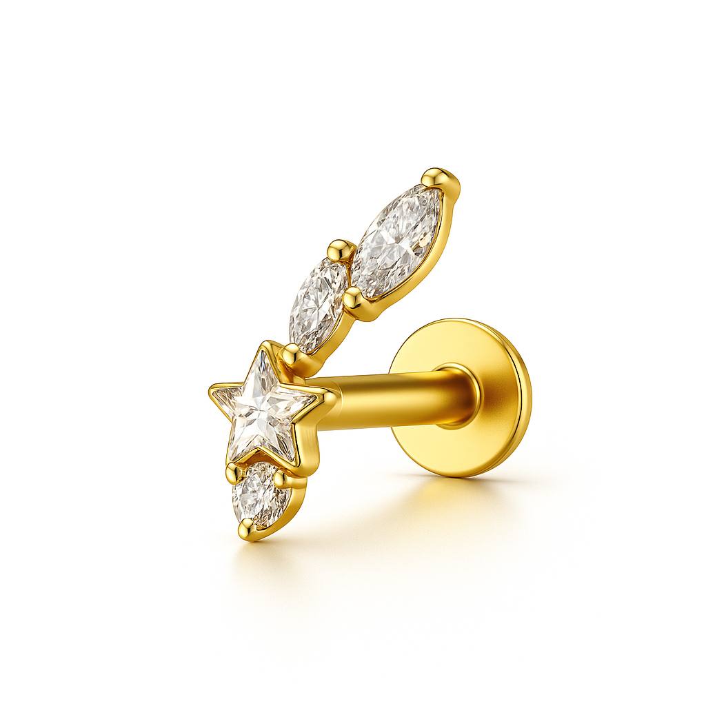 Tytanowy zloty labret z białymi cyrkoniami kolczyk do piercingu